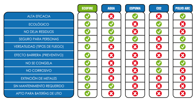 ECOFIRE es un agente extintor versátil que puede utilizarse en una amplia variedad de incendios, incluyendo las clases A (materiales sólidos), B (líquidos inflamables), C (gases inflamables) y K (aceites y grasas de cocina).